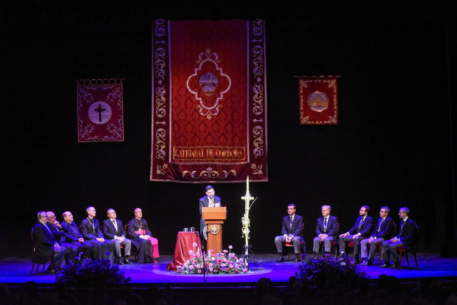Había gran expectación, dada la brillante carrera del pregonero, el periodista Eloy Moreno, en este tipo de expresión literaria. Fue presentado por Rafael Carmona, con intensa emoción, tras los sones de la Banda de la Esperanza. El pregonero no defraudó a nadie, con uno de los pregones mejor construidos desde el punto de vista cofrade, en el que mediante una prosa poética hizo un recorrido por cada uno de los días de la Semana Santa cordobesa, llegando al extremo de fervor popular cuando, al referirse a la Reina de los Mártires, tuvo unas sentidas palabras para las víctimas del terrible accidente ferroviario de Adamuz. El público le tributó uno de los aplausos más largos que se recuerdan en los últimos años.